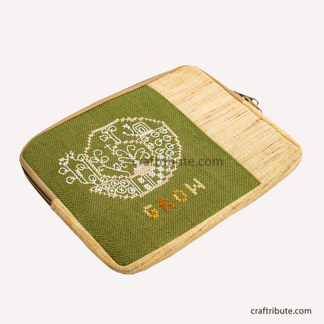 Jute - Cotton 16" Laptop Cover with Hand Embroidery | Kamli Tribes | Grow | 35.5 cm x 26 cm x 1.5 cm
