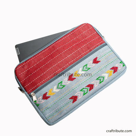 Jute 15" Laptop Sleeve with Hand Embroidery | Kamli Tribes | Red & Grey | 35.5 cm x 25 cm x 1.5 cm