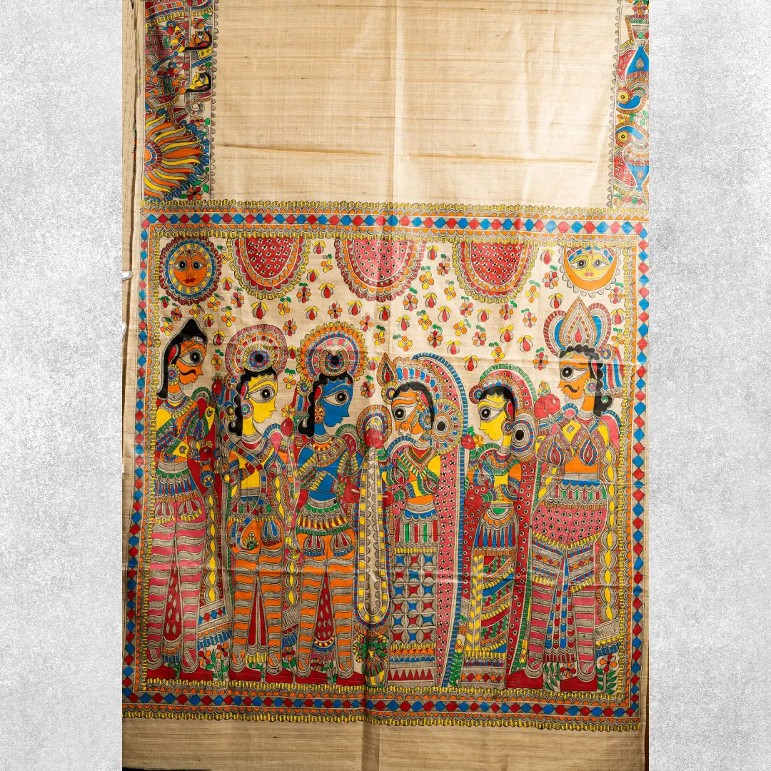 Madhubani Hand Painted Tussar Silk Saree | Craftribute | Shreeram Janaki Vivah