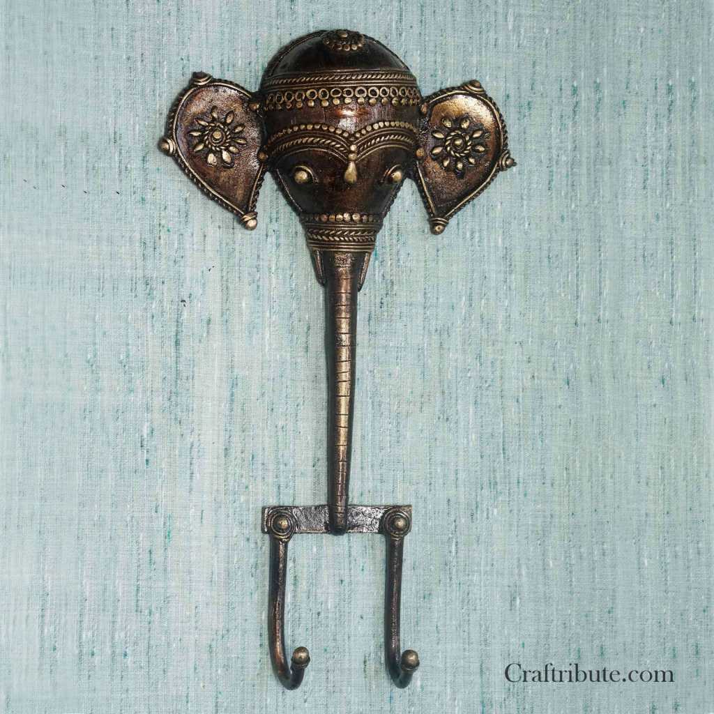 Handcrafted Dhokra/ Dokra (Bell Metal) elephant face hook made by skilled craftsmen from Bastar, Chhattisgarh.