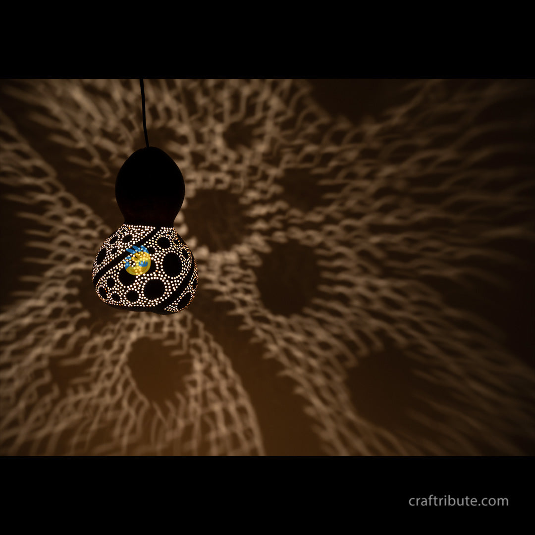 Handcrafted Tribal Tumba Lamp | Craftribute | Eco-Friendly Bottle Gourd Shell Art | Circles | 25 cm x 9 cm