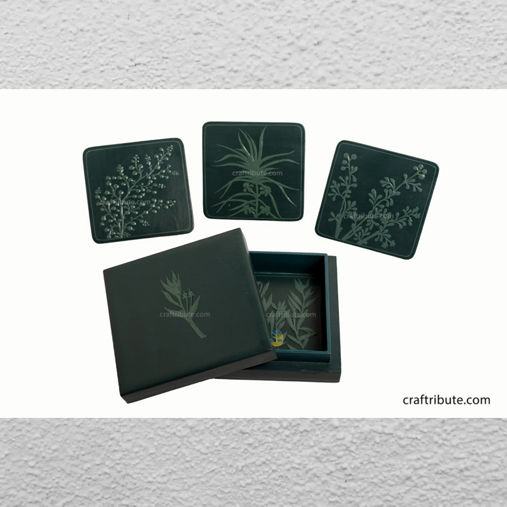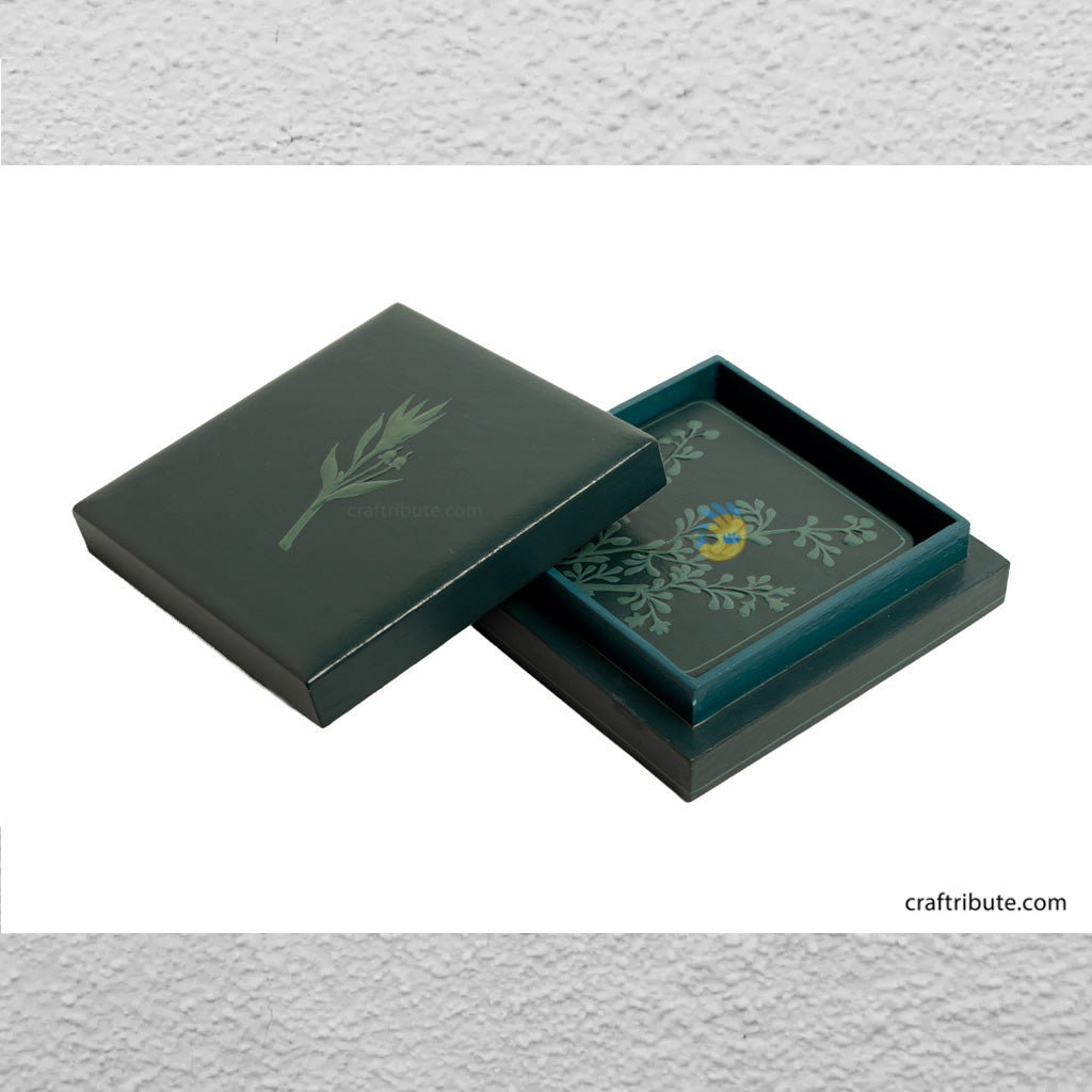 2. Naqashi Hand painted Coasters set x 1 – A set of 4 beautiful hand painted coasters in a relief style by skilled artisans from the valley of Kashmir.