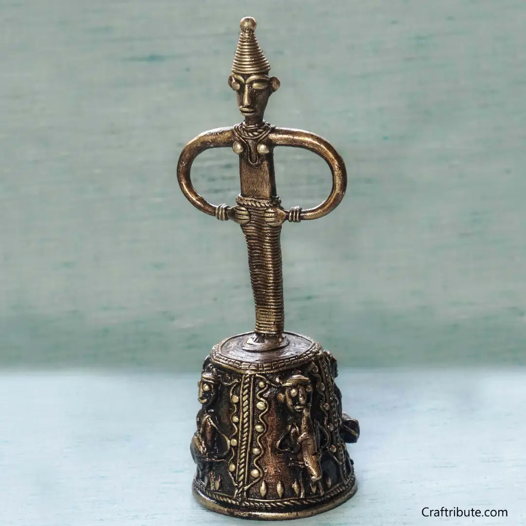 Bell Metal (Dhokra) bell with intricate figurines of dancing men.