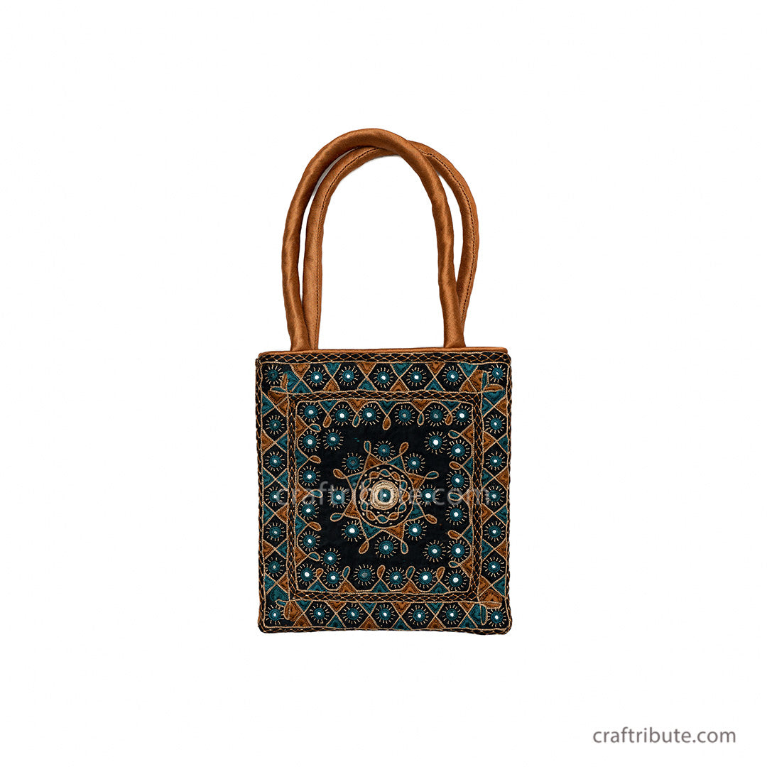 Kutch Hand Embroidery Ladies Handbag | Craftribute | Shining Star | 16.7 cm x 17.5 cm