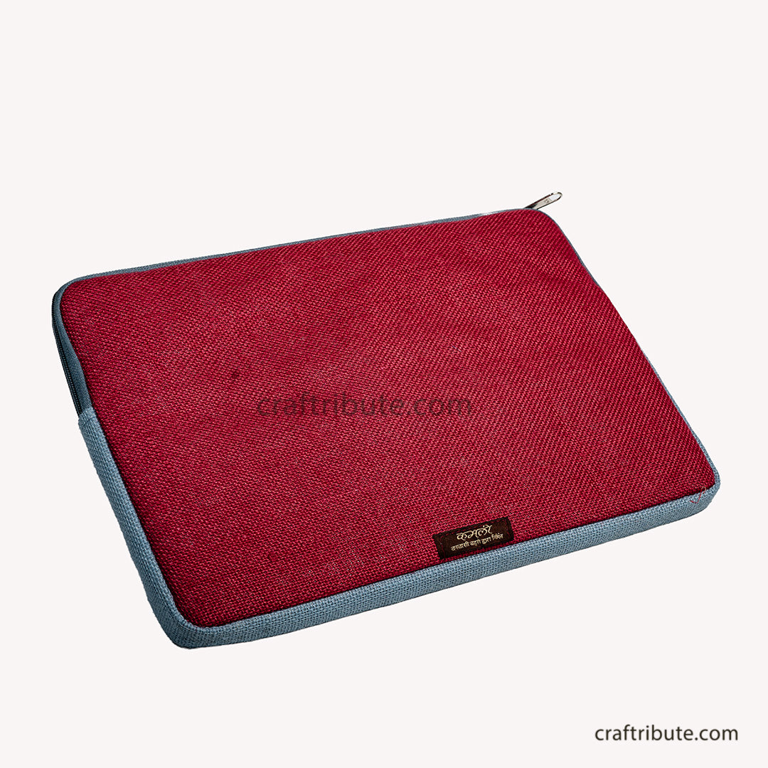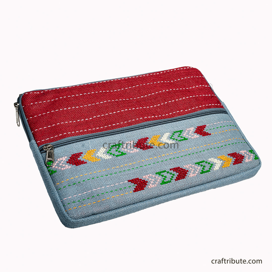 Jute 15" Laptop Sleeve with Hand Embroidery | Kamli Tribes | Red & Grey | 35.5 cm x 25 cm x 1.5 cm