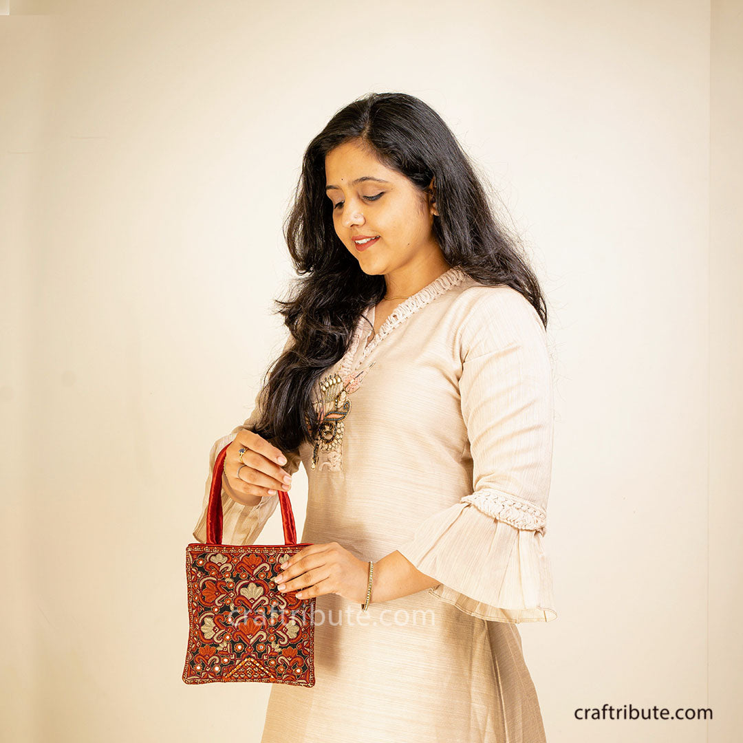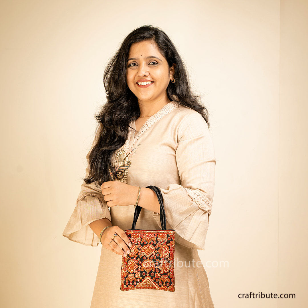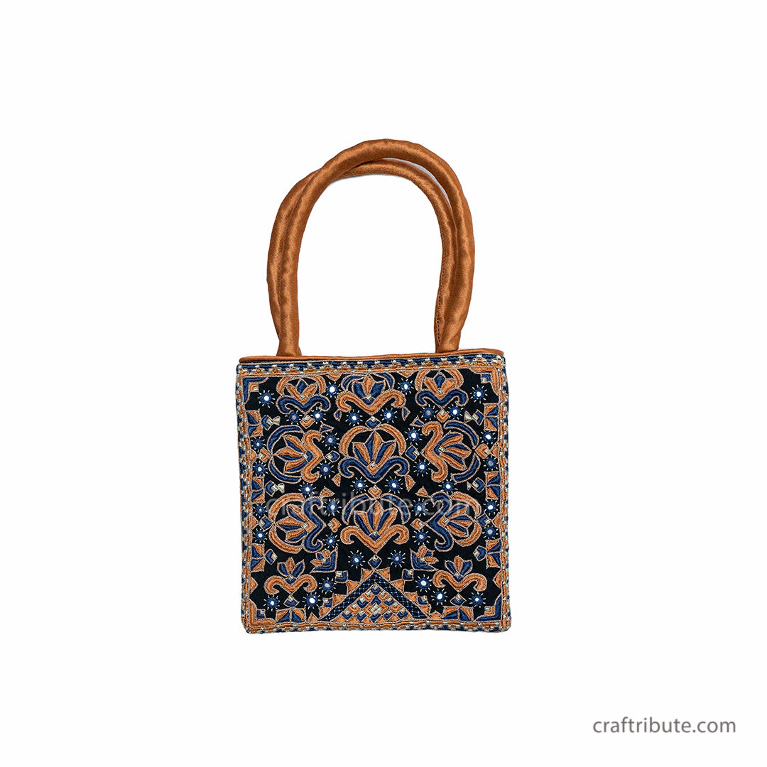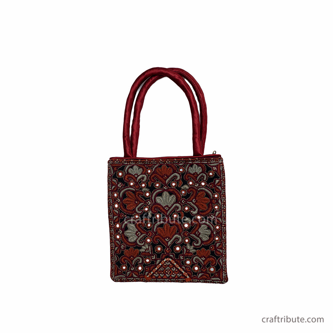 Kutch Hand Embroidery Ladies Handbag | Craftribute | Flowers | 16.7 cm x 17.5 cm