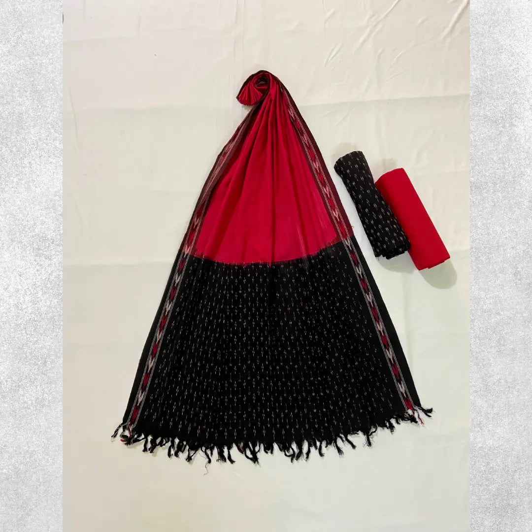 Pochampally Single Ikat Dress Material With Dupatta | Craftribute| Black Red | Paagadu Bandhu Handloom