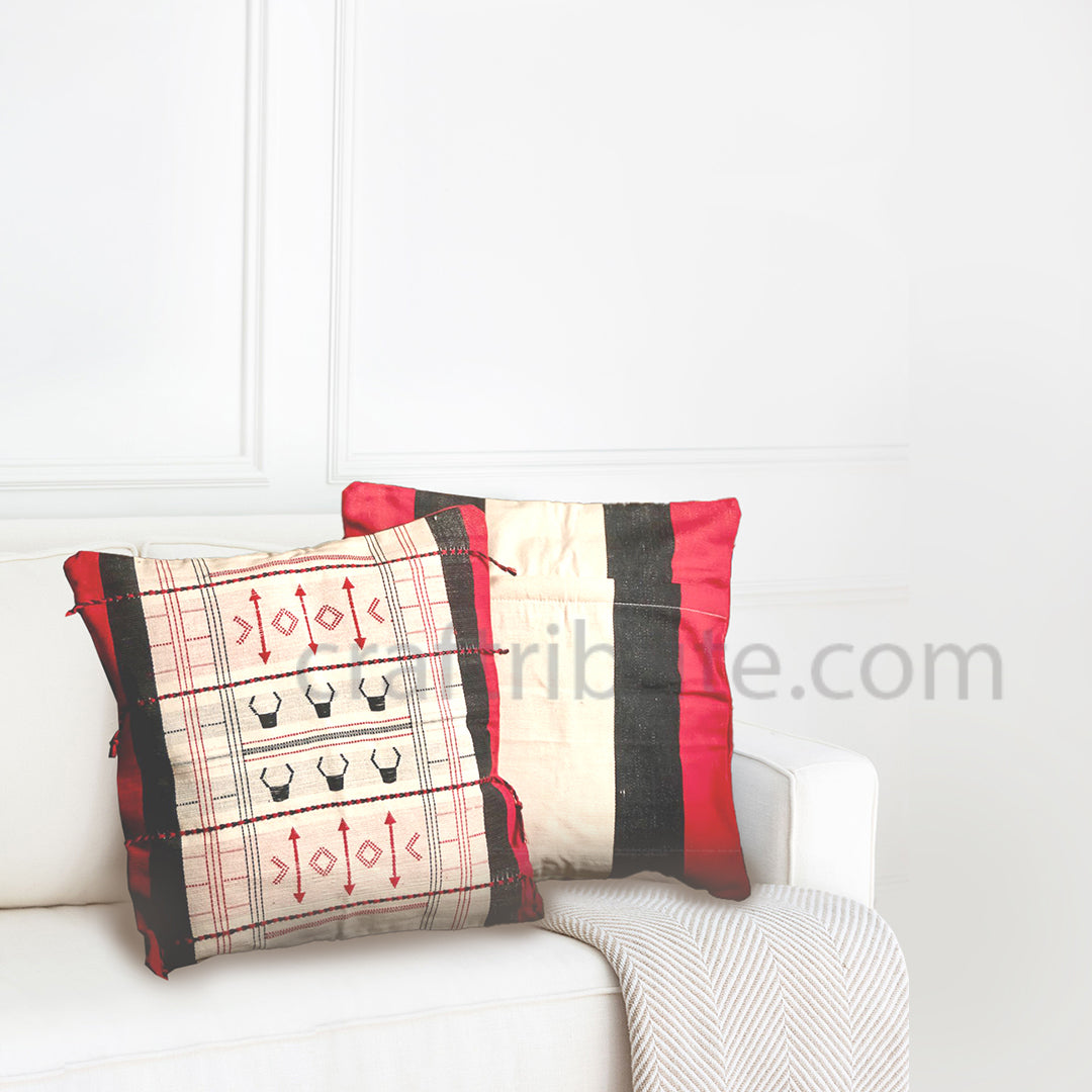 Backstrap Weave Handloom Cushion Cover | Craftribute | Red & Black Geometric Pattern | 16 x 16 inch