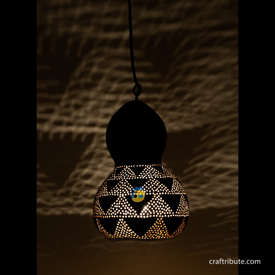 Tumba (Bottle Gourd Shell) Lamp – Triangles (M)