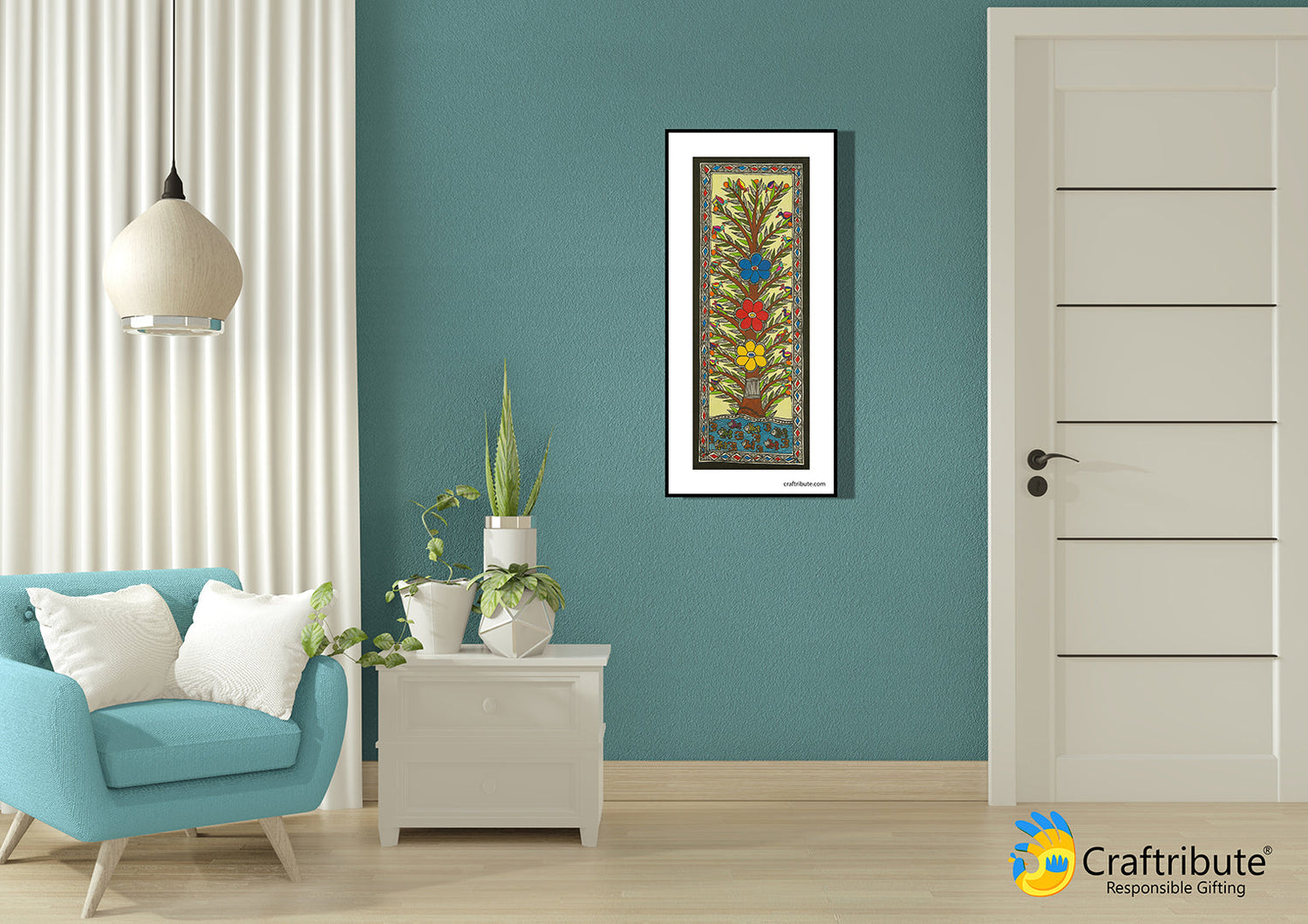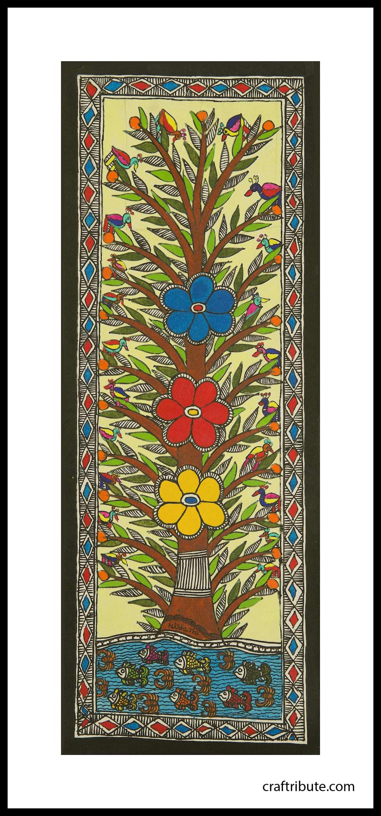 Folk Art Madhubani Painting | Craftribute | Floating Flowers| Wall Decor -14.5 cm x 38 cm