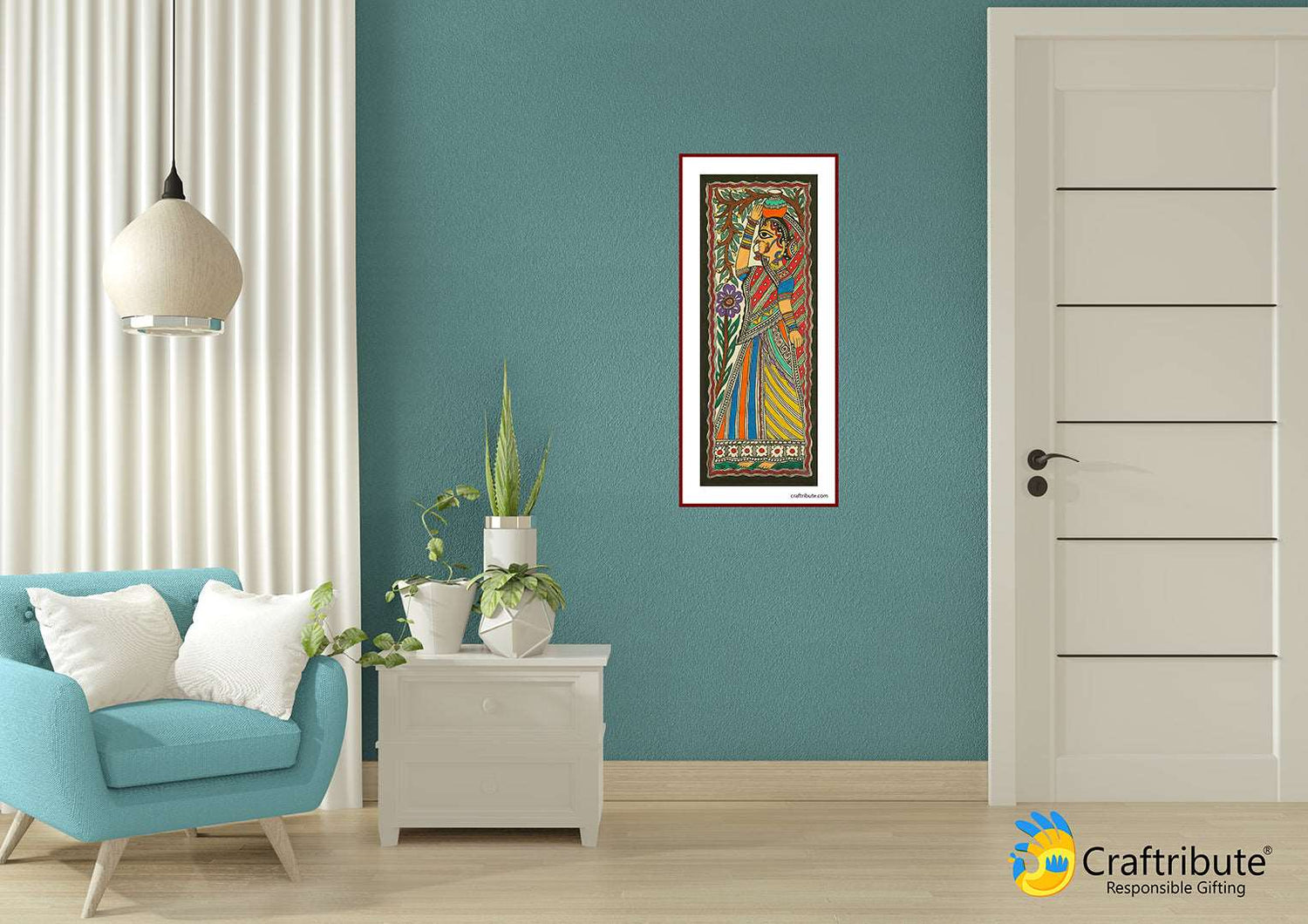 Folk Art Madhubani Painting | Craftribute | Gopi | Wall Decor - 14.5 cm x 38 cm