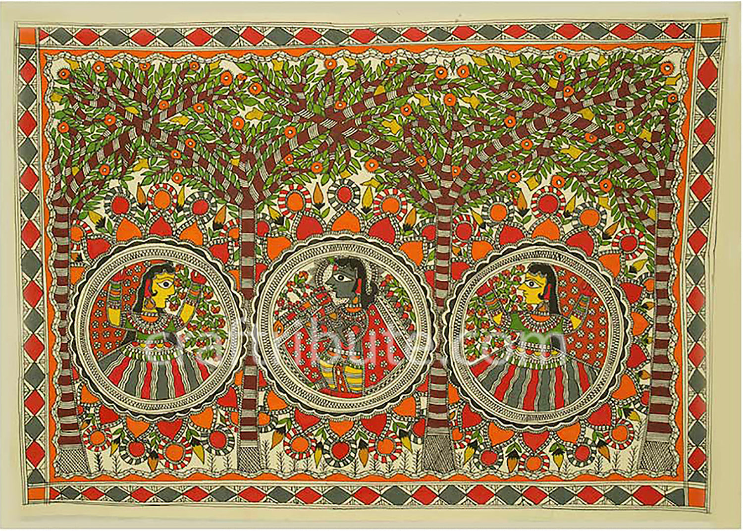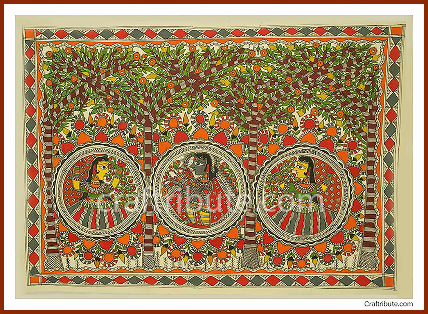 Folk Art Madhubani Painting | Craftribute | Gopi Krishna | Wall Decor -76.5 cm x 57.5 cm