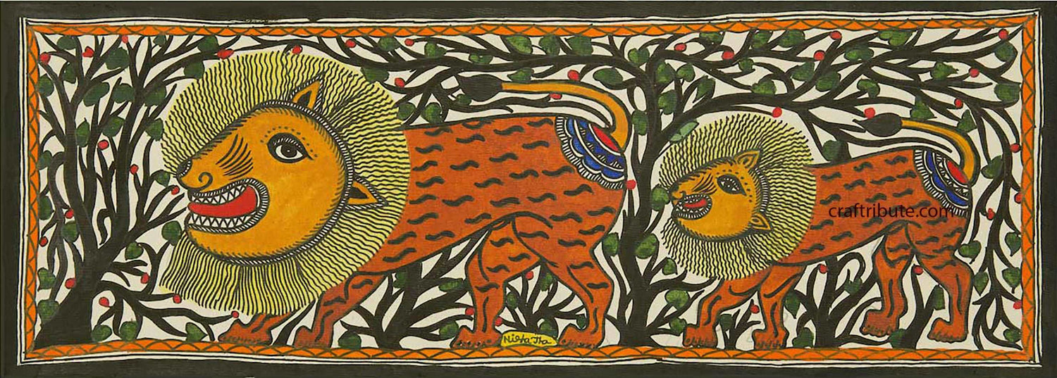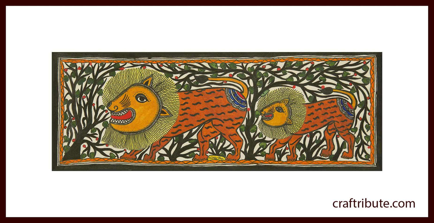 Folk Art Madhubani Painting | Craftribute | The Lion King| Wall Decor - 38.5 cm x 14.5 cm