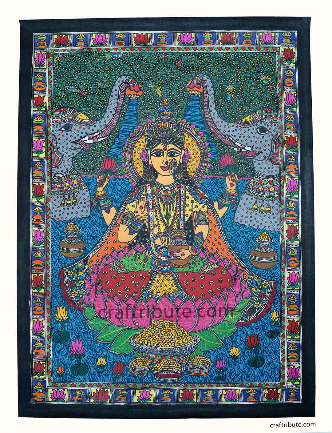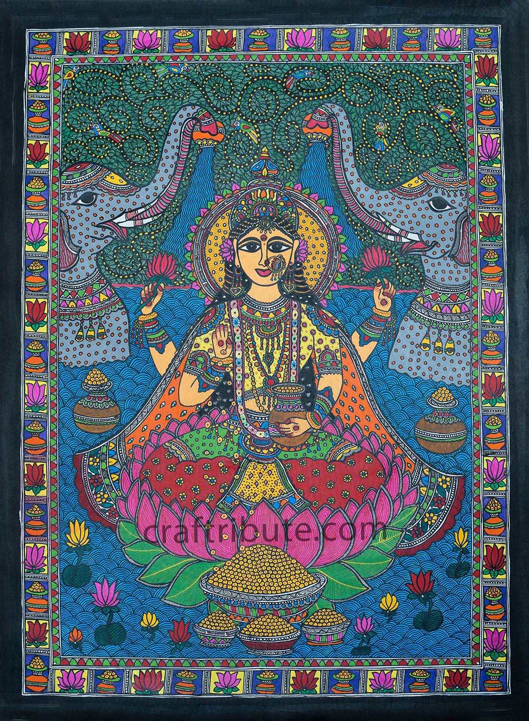 Folk Art Madhubani Painting | Craftribute | Ma Lakshmi | Wall Decor - 57.5 cm x 76.5 cm