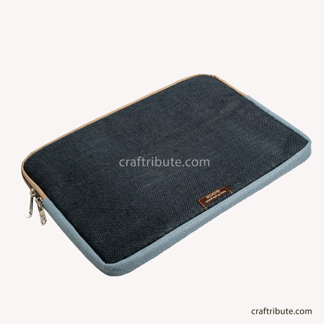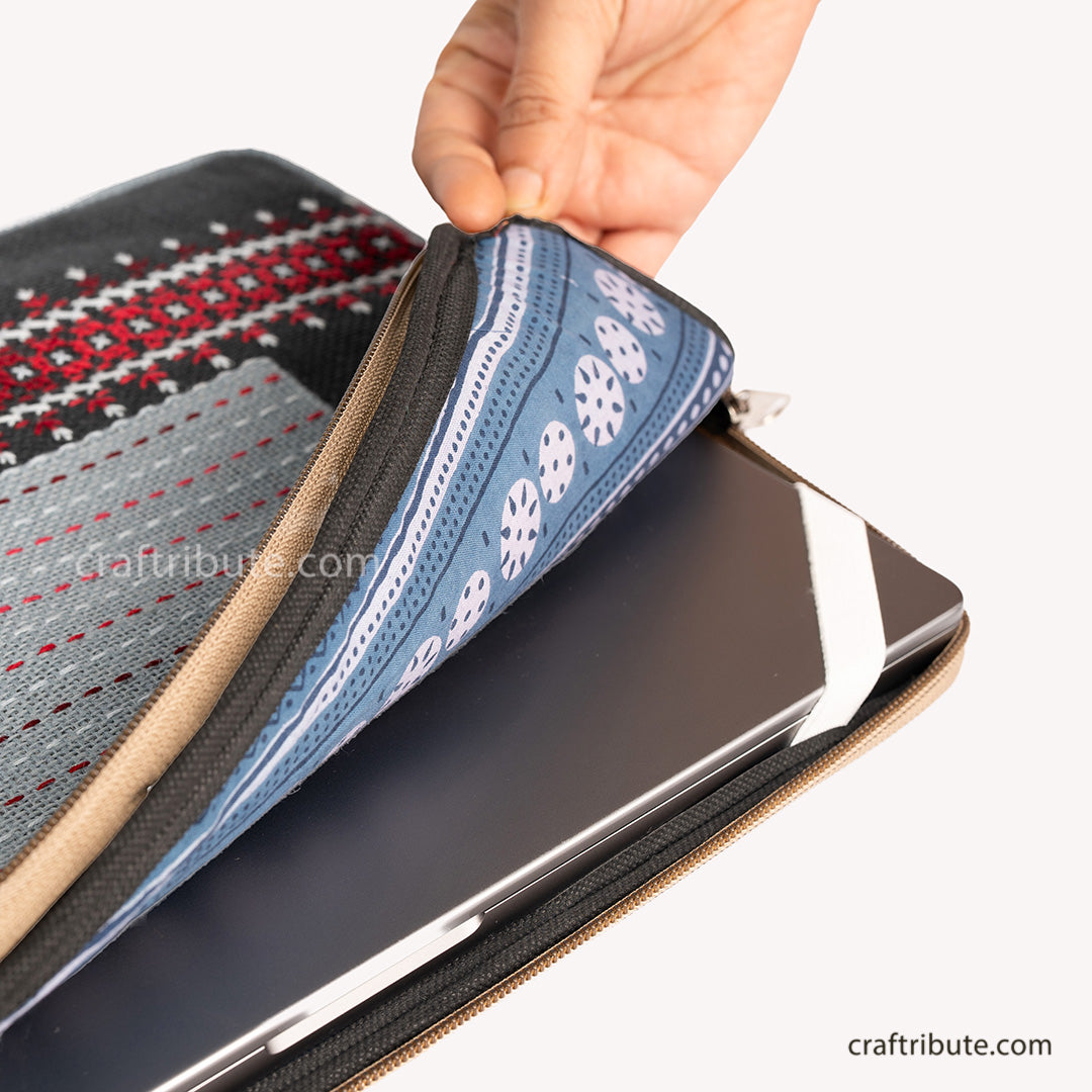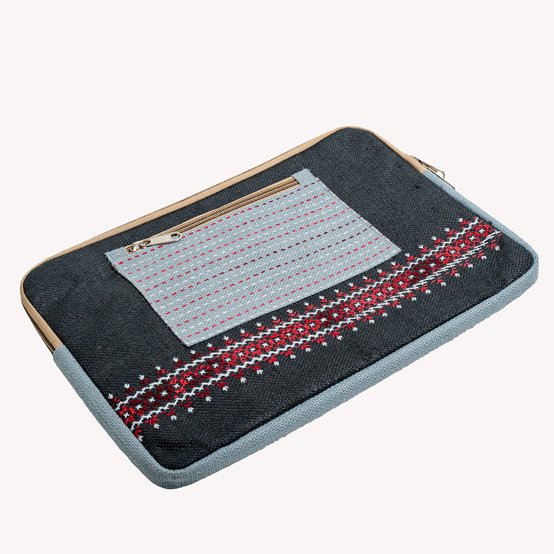Jute 15" Laptop Sleeve with Hand Embroidery | Kamli Tribes | Zip pocket | 35.5 cm x 25 cm x 1.5 cm - Black & Grey is backordered and will ship as soon as it is back in stock.