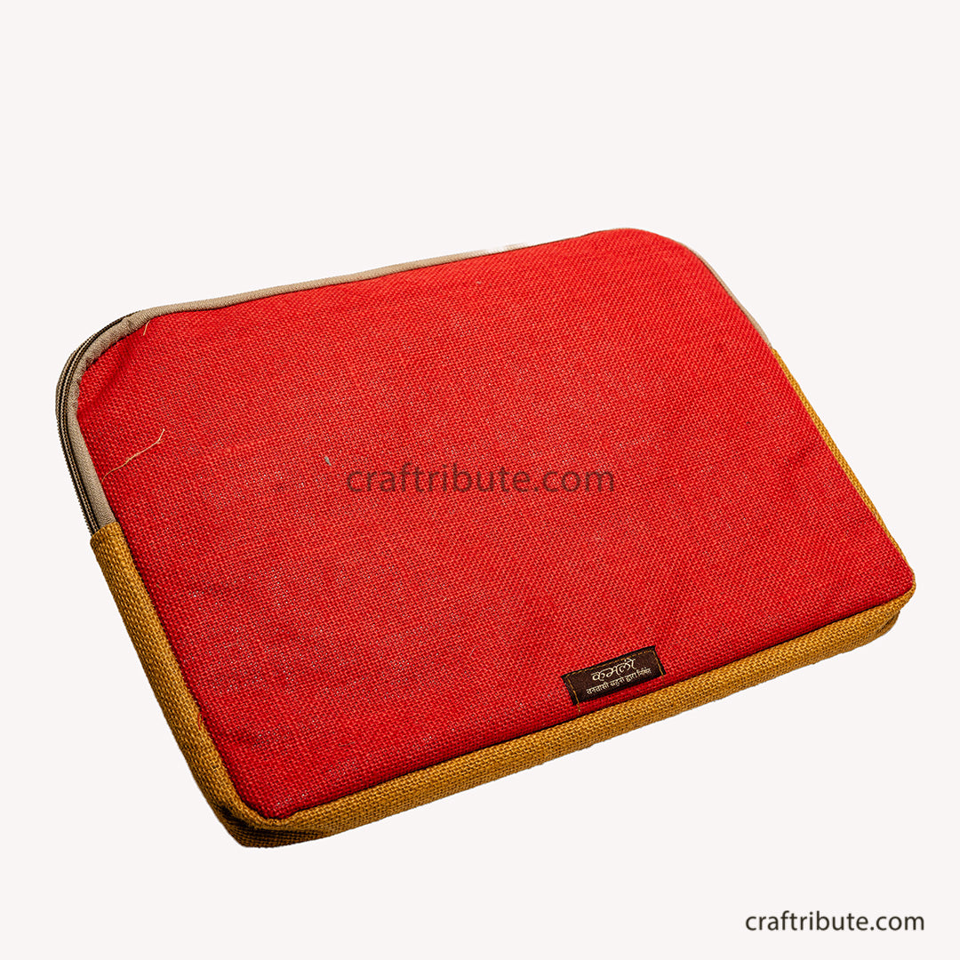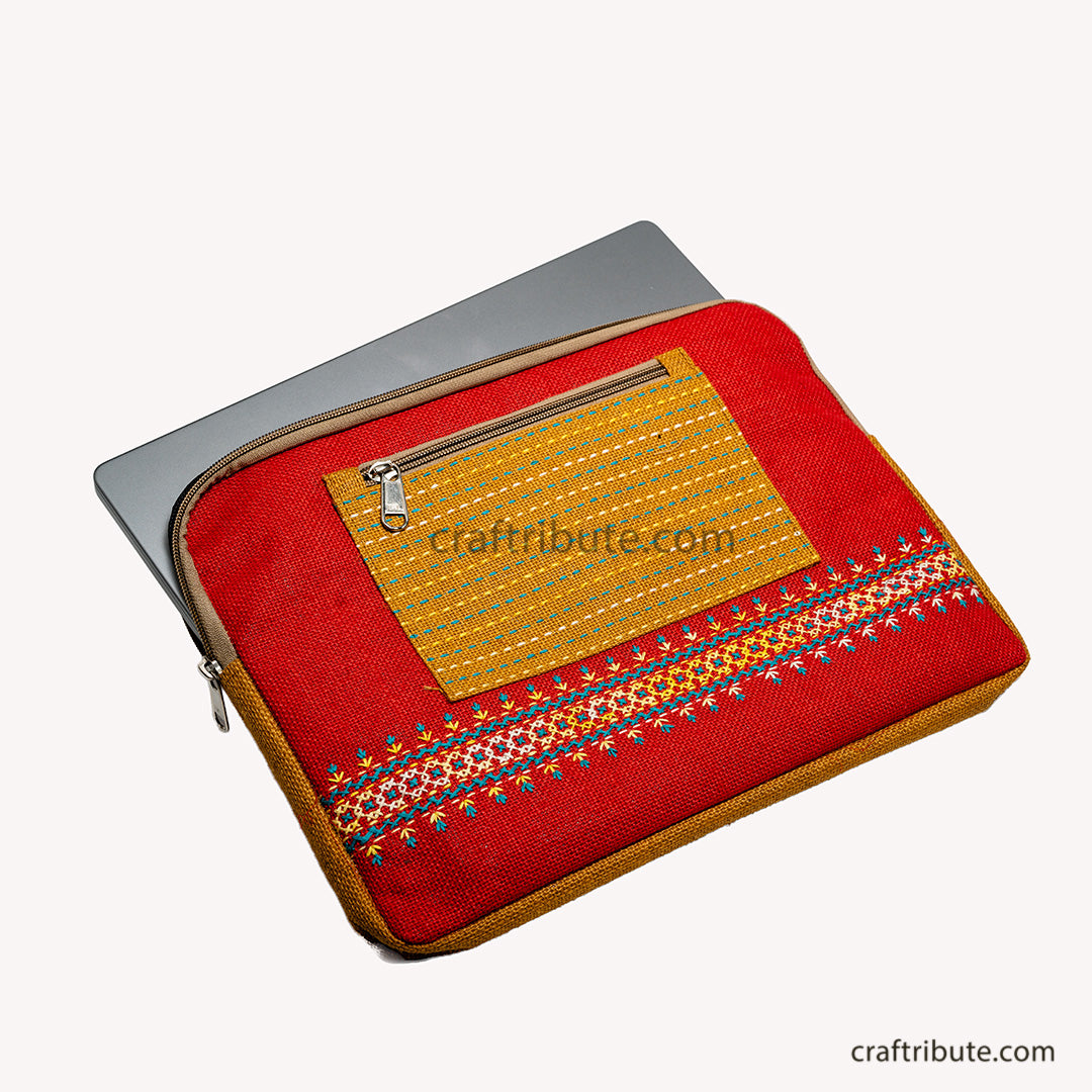 Jute 15" Laptop Sleeve with Hand Embroidery | Kamli Tribes | Zip pocket | 35.5 cm x 25 cm x 1.5 cm