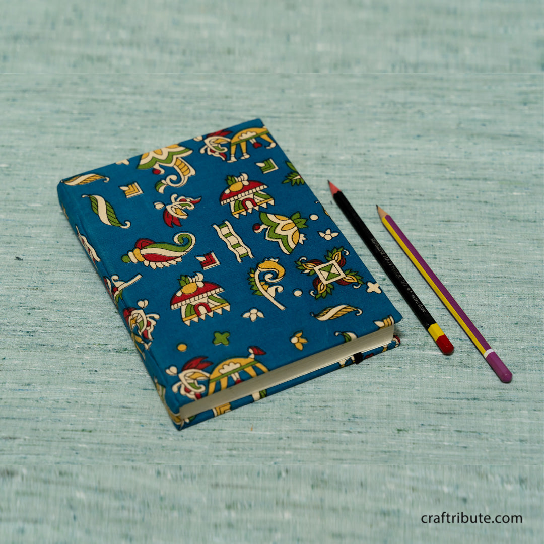 Handmade paper notebook with attractive blue cover and beautiful textured paper.