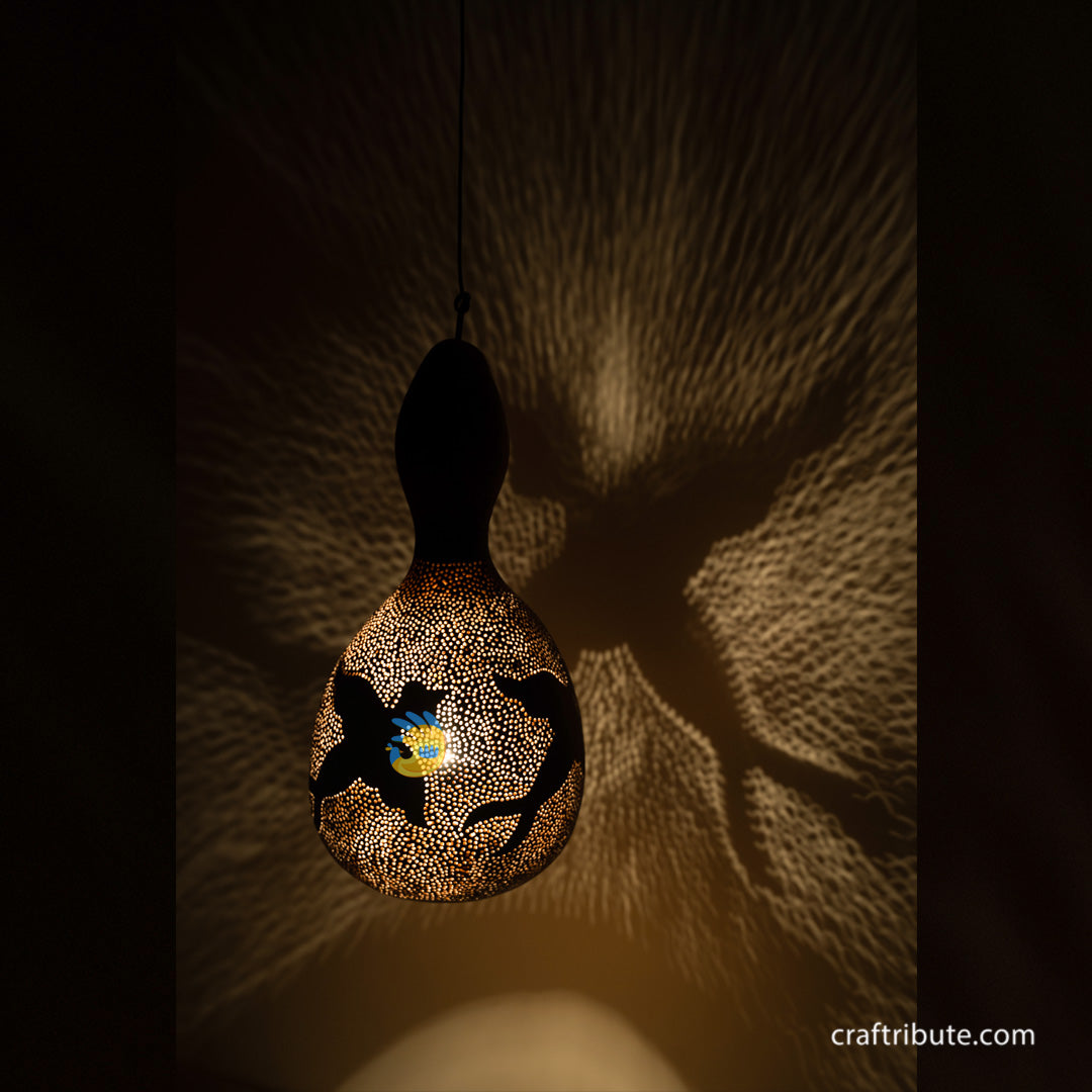 Handcrafted Tribal Tumba Lamp | Craftribute | Eco-Friendly Bottle Gourd Shell Art | Bird (xL) | 43 cm x 10 cm is backordered and will ship as soon as it is back in stock.