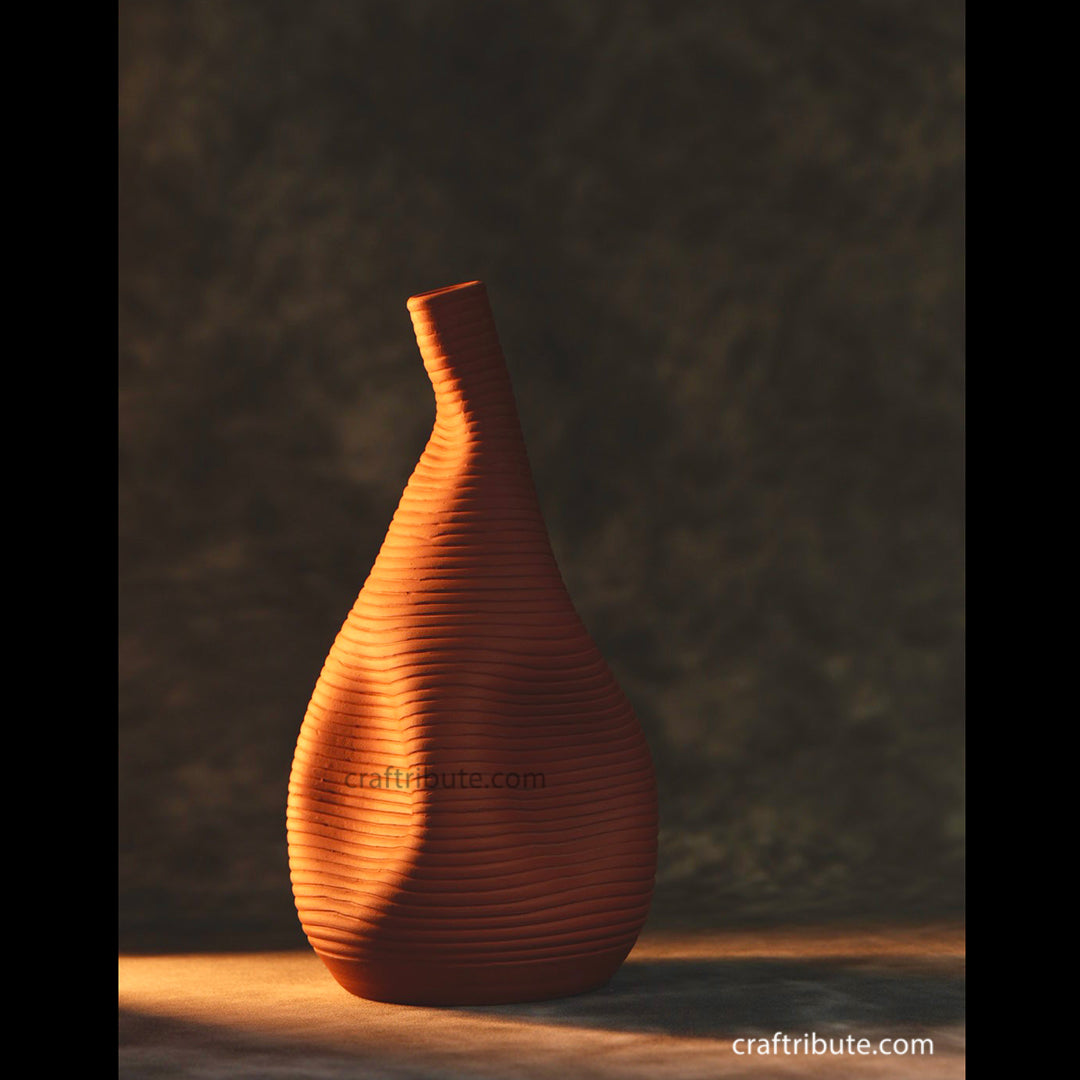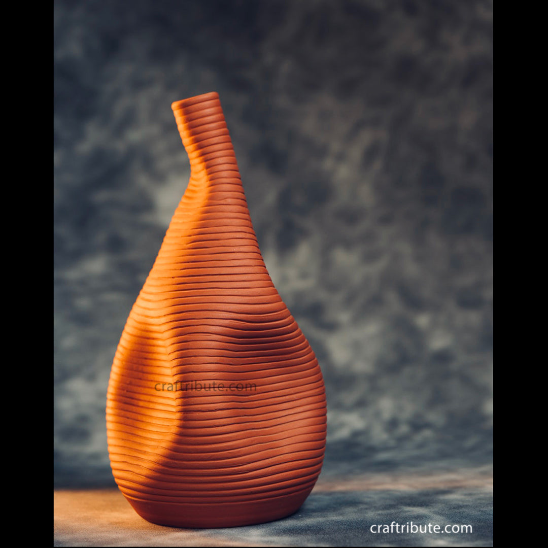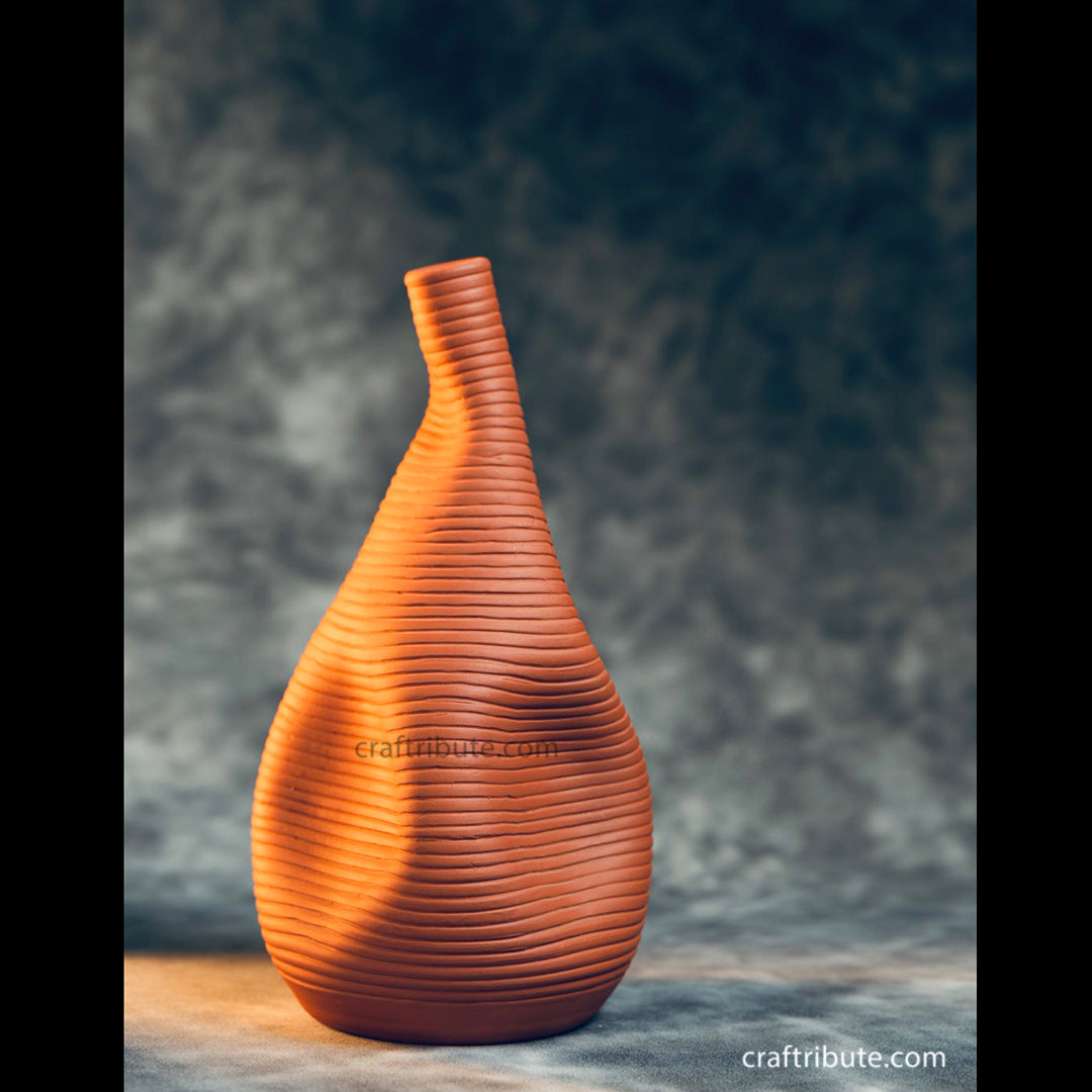 Craftribute | Terracotta Vase | Impressions | 23 cm(Height) x 8 cm(Base) x 2 cm(Opening)