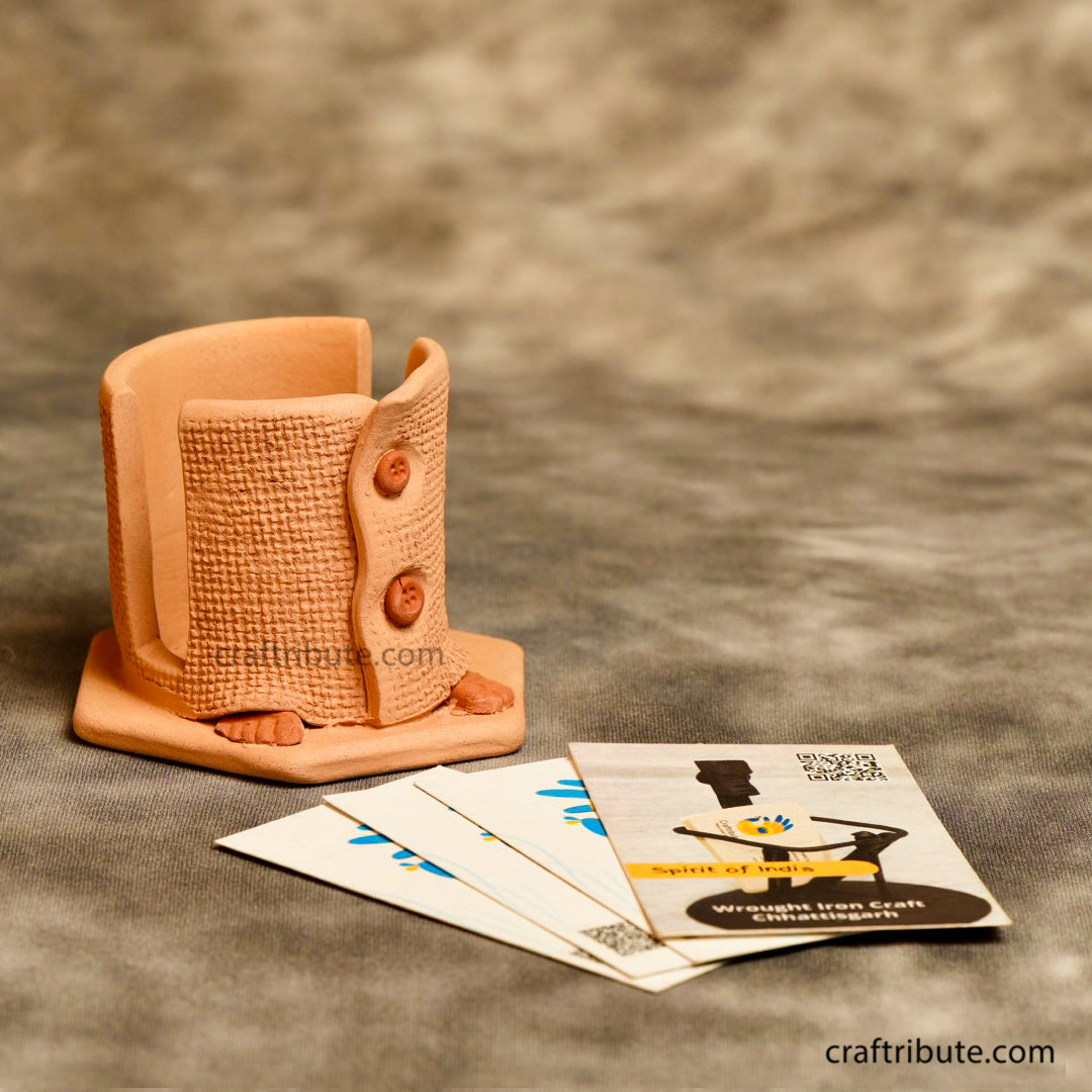 Terracotta/Terra-Cotta visiting cardholder in a unique design. Each piece is handcrafted individually for its distinctive character. It's unique and sustainable. It is ideal for gifting on personal and professional occasions.