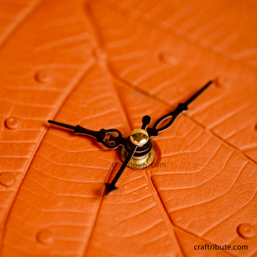 Terracotta/Terra-Cotta wall clock that is a beautiful imprint of a teak leaf. Each piece is handcrafted individually for its distinctive character. It's unique and sustainable. It is ideal for gifting on personal and professional occasions.