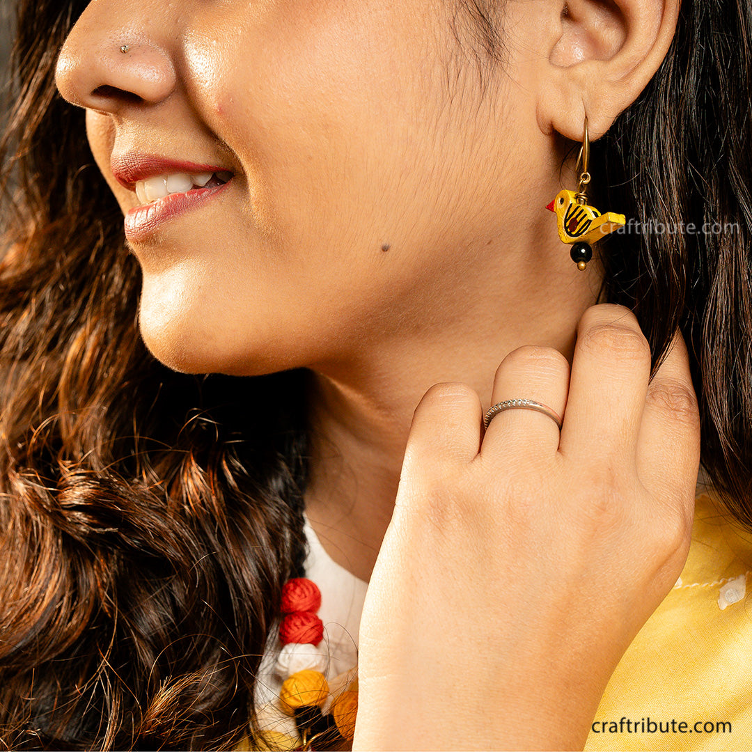 Hand Painted Jewellery Set | Craftribute | Tikuli Art | Yellow, White, Red Thread Beads